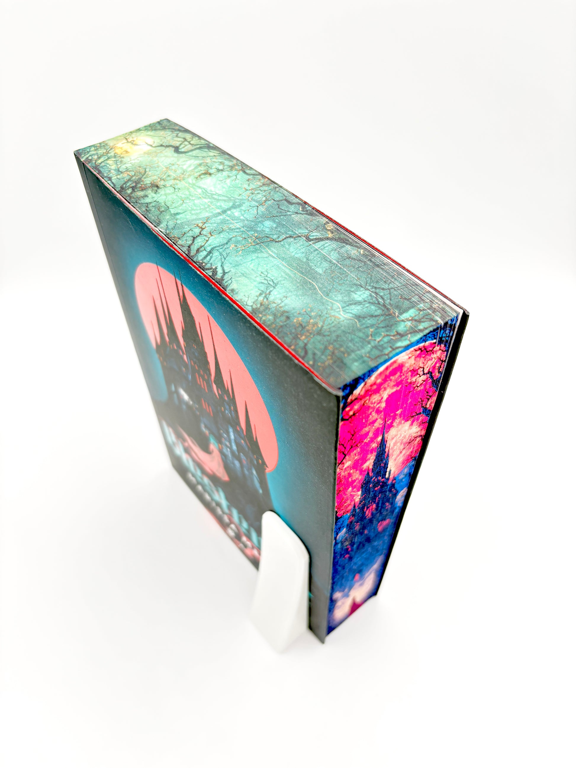 Ediție personalizată cu margini imprimate profesional. Fiecare volum cu printed edges primește un design grafic creat special pentru a completa tema și atmosfera poveștii. Acesta poate fi cel expus în fotografii sau poate fi ales de dumneavoastră.