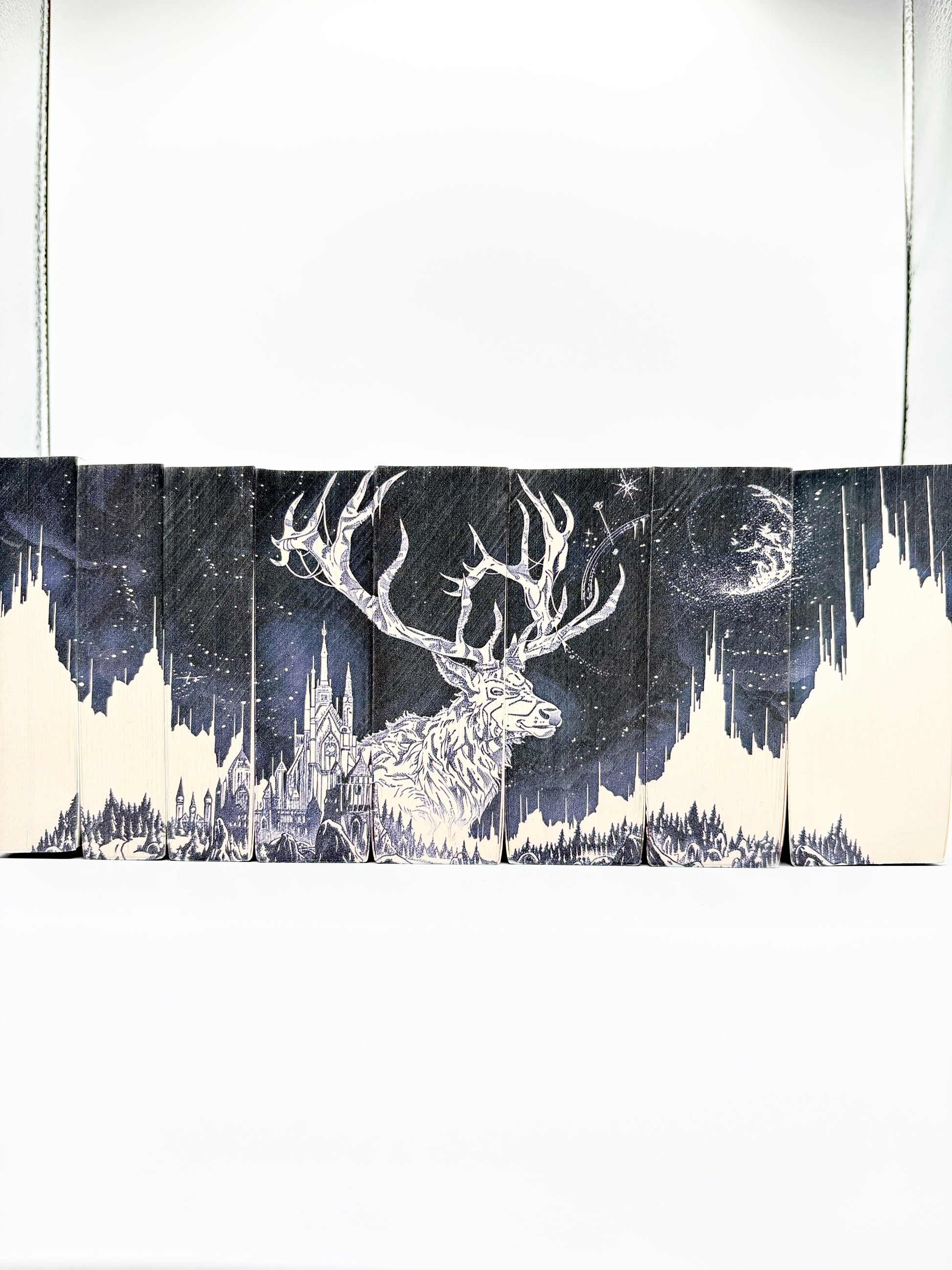 • Printed edges personalizate, cu artă fantasy premium, atât pe cantul principal al cărții, cât și pe muchiile de sus și de jos.
