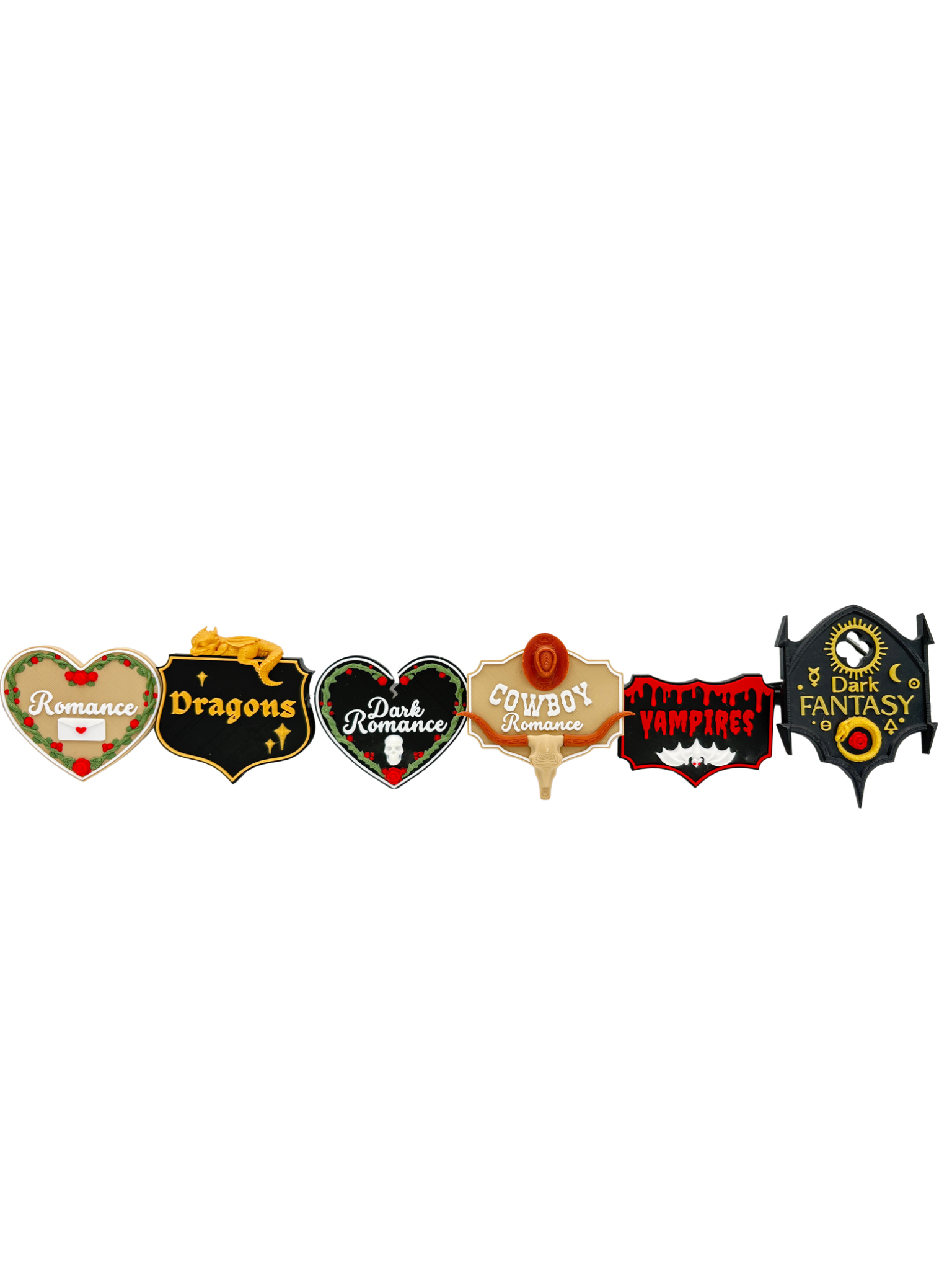 Transformă-ți biblioteca într-un spațiu magic, organizat și extrem de estetic cu acest set complet de plăcuțe decorative pentru bibliotecă. Colecția include toate cele 6 genuri populare – Dragons, Romance, Dark Romance, Cowboy Romance, Dark Fantasy și Vampires – fiecare cu un design unic, inspirat din universurile literare pe care le iubești.